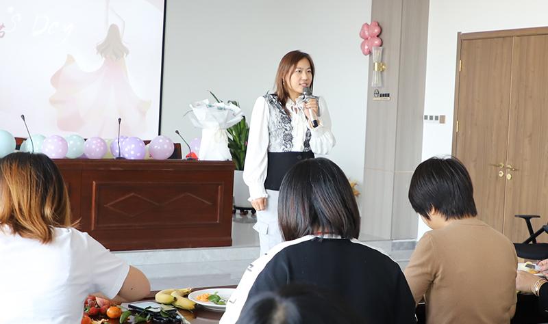 活動開始首先是公司領導王總祝福全體女員工節日快樂!希望大家做自信女神,展現美麗、向上、獨立的新時代職業女性形象。并由衷感謝大家為公司發展所做出的貢獻。同時也感謝男員工“甘為綠葉、樂于奉獻”的紳士精神。希望大家繼續努力,與公司共同進步。