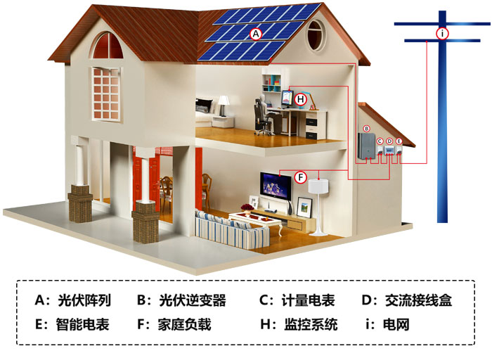 ? ? ? 分布式光伏發電是指采用光伏組件,將太陽能直接轉換為電能的小型發電系統。包括光伏電池組件、光伏方陣支架、直流匯流箱、直流配電柜、并網逆變器、交流配電柜等基本設備,此外還有供電系統監控裝置和環境監測裝置。 ?
