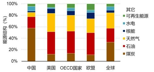與全球主要經(jīng)濟(jì)體相比,我國(guó)重工業(yè)比重偏高,能源結(jié)構(gòu)以煤為主,在新能源利用方面,還有很大的上升空間。