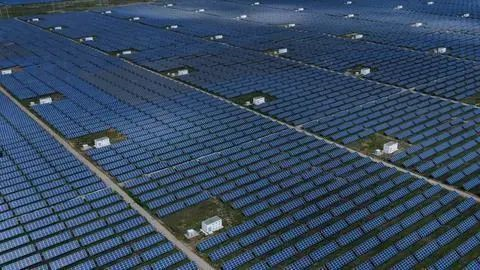 深藍(lán)色的光伏板熠熠生輝,風(fēng)力發(fā)電機(jī)的葉片迎風(fēng)飛轉(zhuǎn),百米高的吸熱塔和“鏡子海洋”組成科技感十足的熔鹽塔式光熱電站……真沒想到,塔拉灘這片半荒漠化的“風(fēng)沙之地”,如今卻成為千萬千瓦級(jí)的新能源基地。