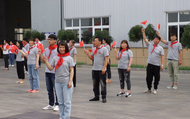 瑞豐達(dá)全體員臉上貼著國旗標(biāo)志,手拿中國國旗并佩戴紅領(lǐng)巾,滿面春風(fēng),神采飛揚(yáng)。