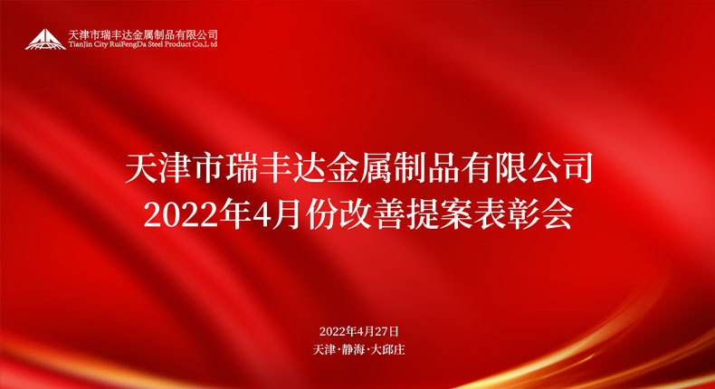 為營(yíng)造精益求精、不斷創(chuàng)新的改善氛圍,進(jìn)一步激發(fā)員工參與熱情,4月27日,天津市瑞豐達(dá)金屬制品有限公司4月改善提案表彰會(huì)在三樓報(bào)告廳舉行,公司領(lǐng)導(dǎo)張總、公司中層管理人員、標(biāo)準(zhǔn)化咨詢組老師及生產(chǎn)車間全體員工參加本次會(huì)議。